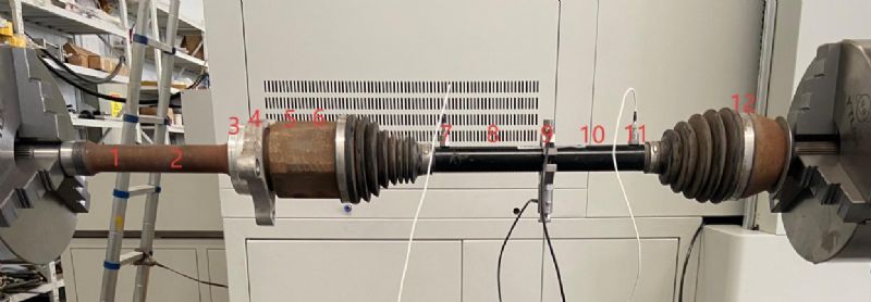 1. Experimentally obtain the first-order modal characteristics of a passenger vehicle drive shaft.