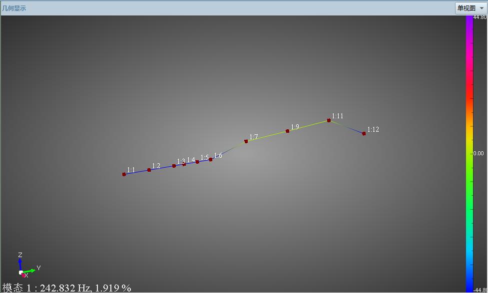 The test specimen was a production passenger vehicle drive shaft. A simplified geometric model was established to define sensor positions and to facilitate mode shape reconstruction. Both uniaxial and triaxial accelerometers were deployed along the shaft’s length, with vertical DOF responses used for modal extraction.